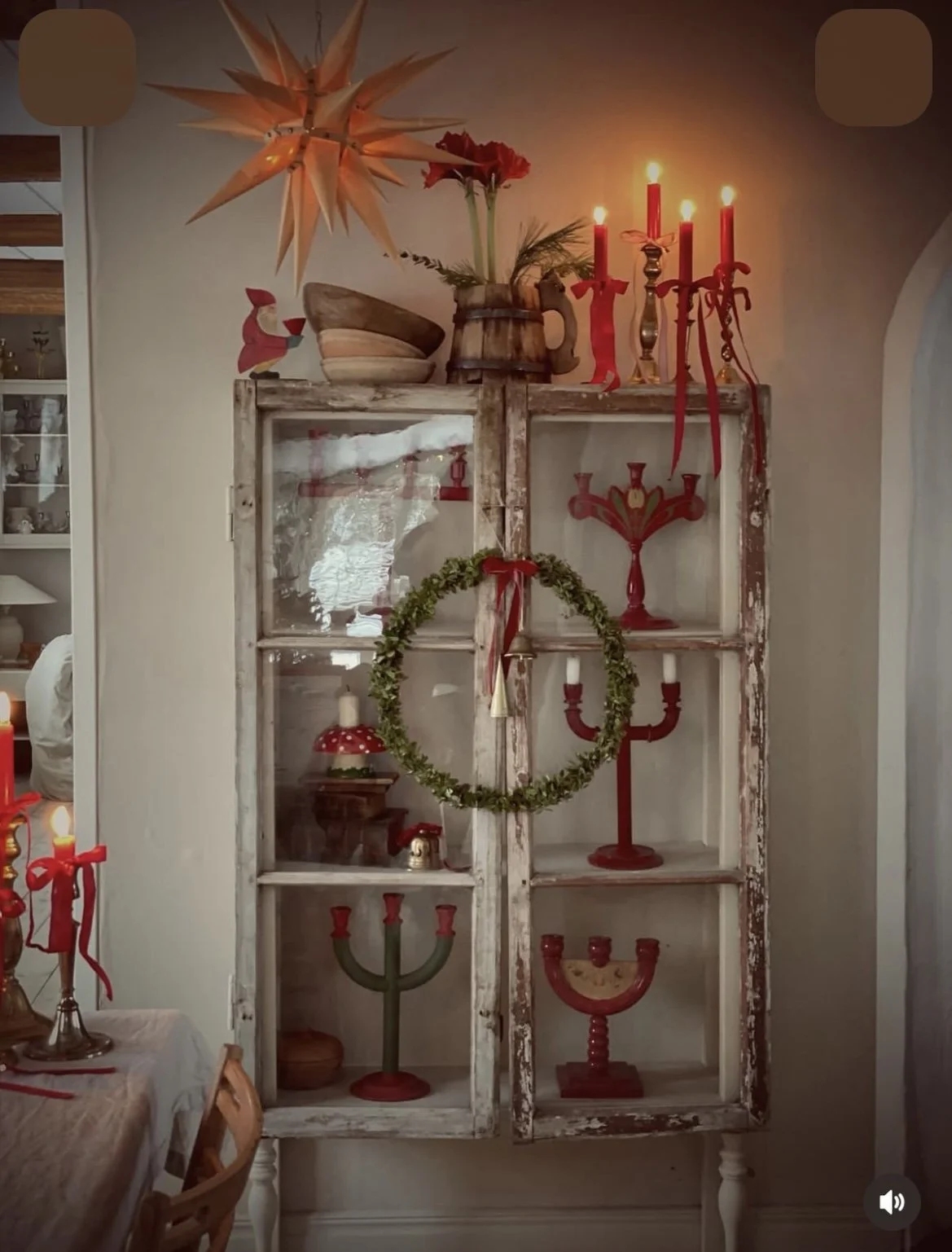 Stearinlys i alle vinduskarmer.